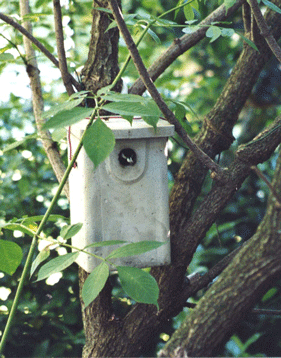 Ici on voit une mésange charbonnière sortant et emportant une poche fécale.